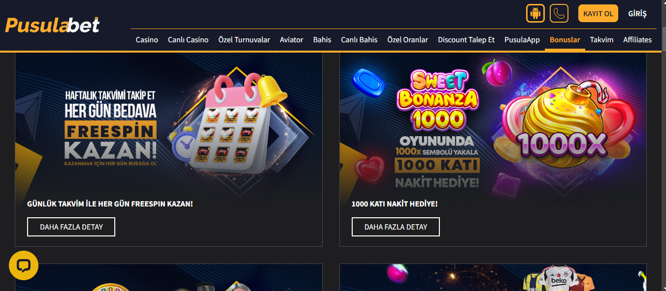 Düzenli olarak hesabınıza para yatırıyorsanız, Pusulabet’in yatırım bonuslarından faydalanabilirsiniz. Bu bonuslar, yatırdığınız miktara ek bir bakiye sağlayarak bahis yapma imkanınızı artırır.